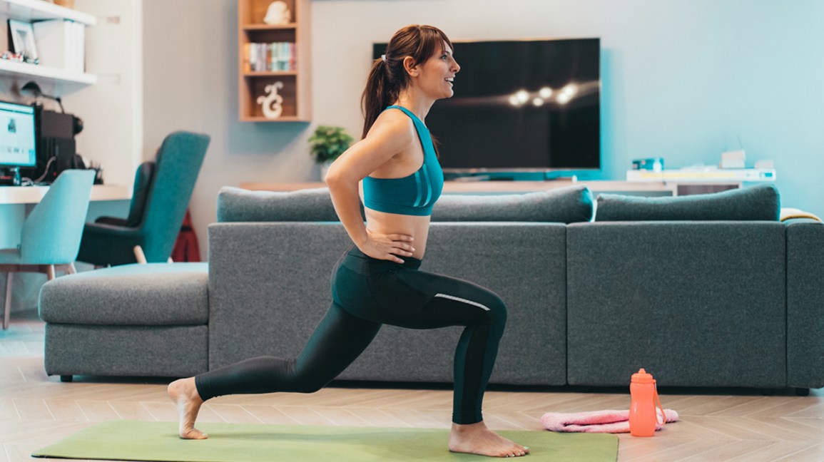 • Lunges: Step one foot forward, about two feet apart, needing the same form as a squat. Bend your back knee and lower your body as far as possible. Push yourself up and back to the starting position.